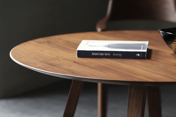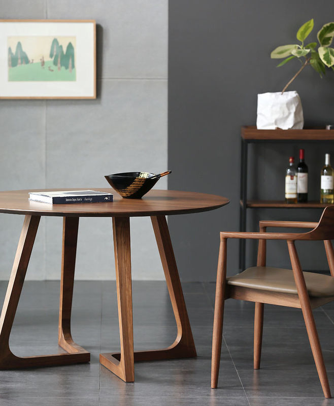गर्म बिकने वाली उच्च गुणवत्ता वाली अखरोट की ठोस लकड़ी की मेज़, लकड़ी का फ़र्निचर, गोल डाइनिंग टेबल, कॉफ़ी होम रेस्तरां डाइनिंग