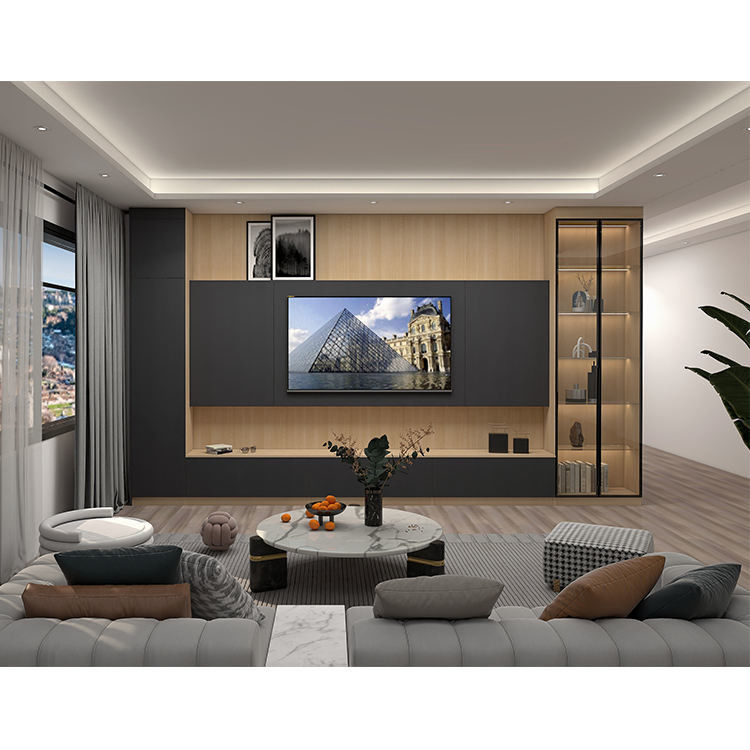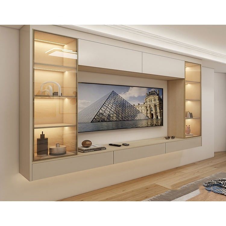मॉडर्न होम होटल फ्लोटिंग वुड टीवी कैबिनेट पैनल फर्नीचर डिजाइन लिविंग रूम हैंगिंग स्क्रीन टीवी कैबिनेट