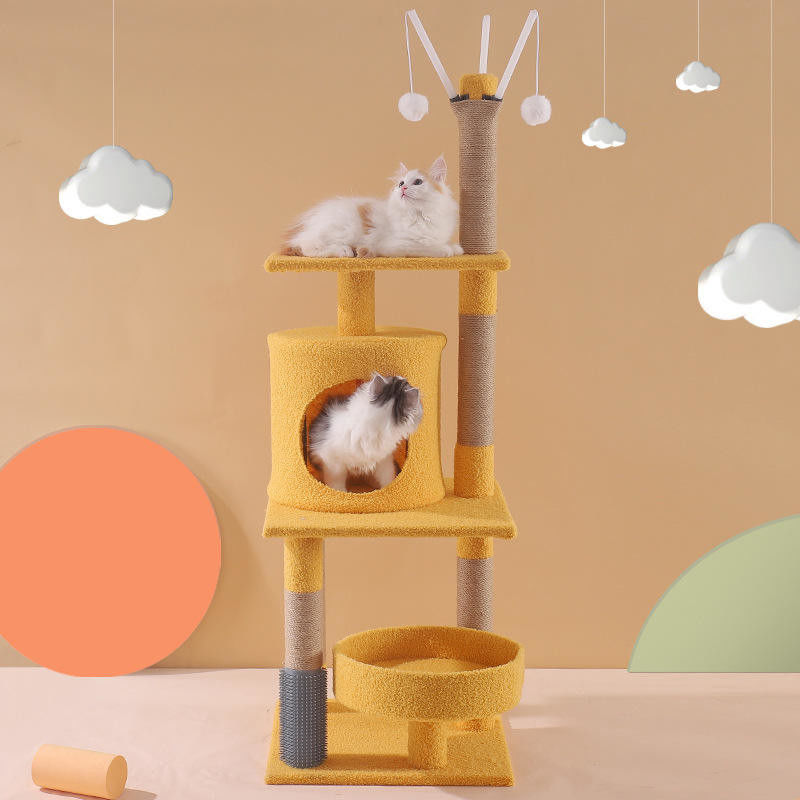 स्क्रैपर पोस्ट: चढ़ने वाले टावर के पेड़ स्क्रैपर पोस्ट से सुसज्जित होते हैं, जो आमतौर पर प्राकृतिक रस्सी या कपड़े में लपेटे जाते हैं, ताकि बिल्लियों को अपने पंजे साफ़ करने के लिए एक आदर्श स्थान प्रदान किया जा सके, जिससे उन्हें फर्नीचर की सुरक्षा करते समय अपने पंजे पहनने में मदद मिलती है।