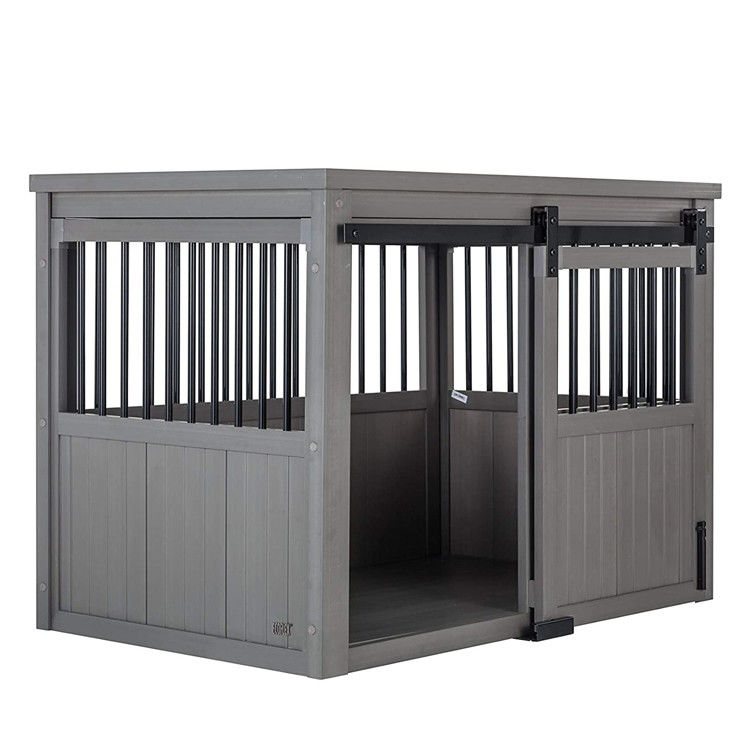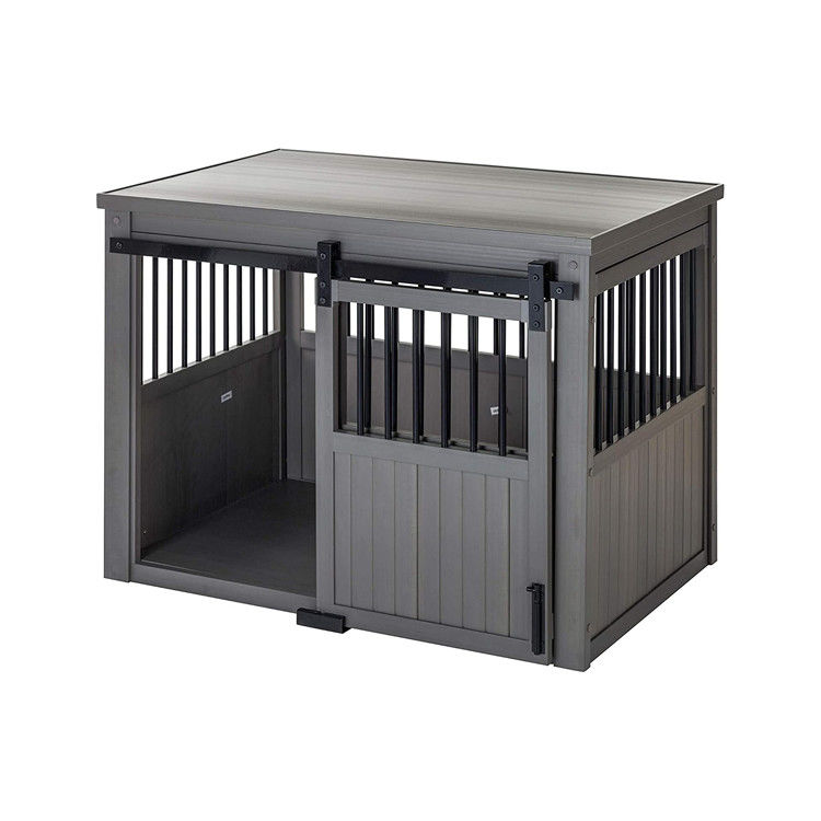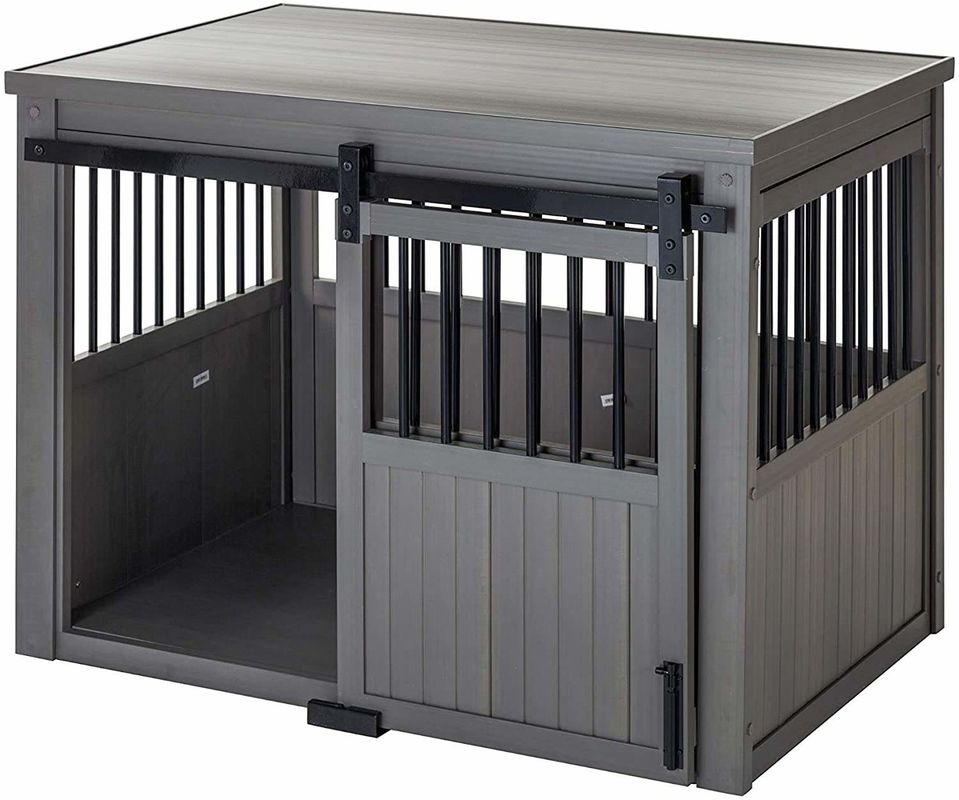 फ़र्निचर स्टाइल डॉग क्रेट एंड टेबल मेश लकड़ी का पालतू टोकरा दरवाजे और पालतू बिस्तर के साथ सजावटी इनडोर डॉग केनेल मध्यम बड़ा