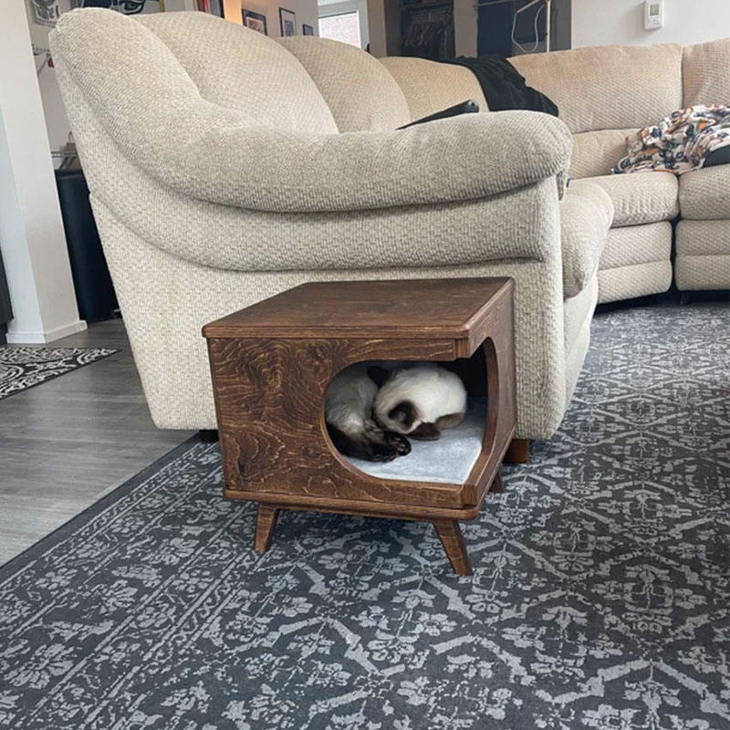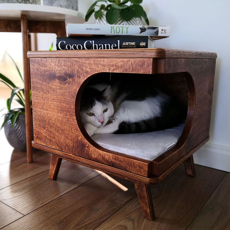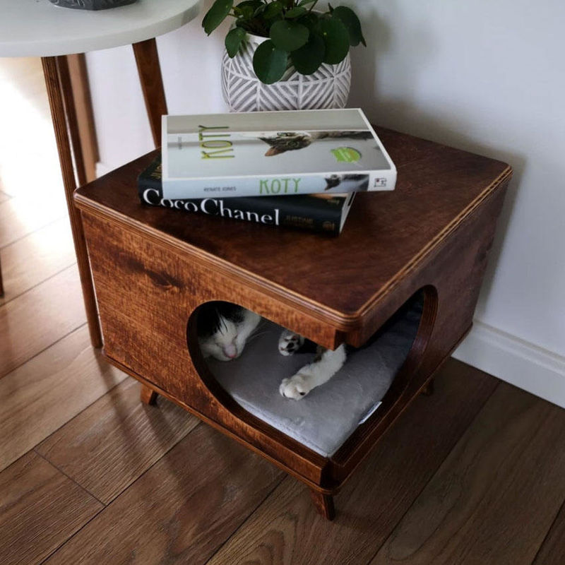 पालतू फर्नीचर साइड टेबल लकड़ी बिल्ली घर आरामदायक लकड़ी बिल्ली बिस्तर घर रस्टिकल बॉक्स
