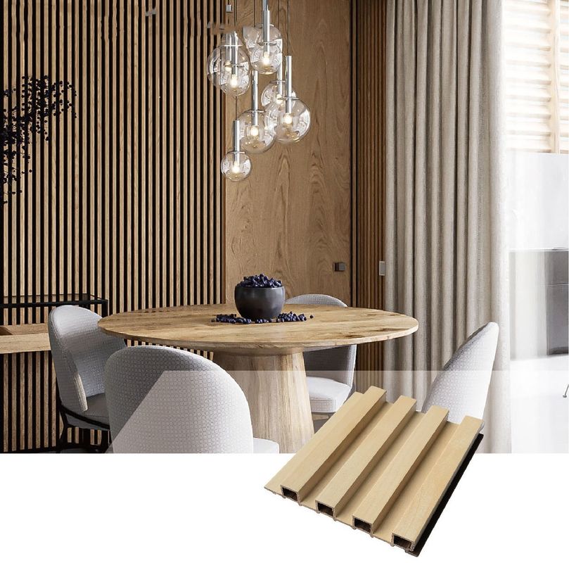 क्रैक रेज़िस्टेंस ग्रिल क्लैडिंग वुड ग्रेन फ्लूटेड पैनल वॉल क्लैडिंग पीवीसी डब्ल्यूपीसी आंतरिक दीवार पैनल