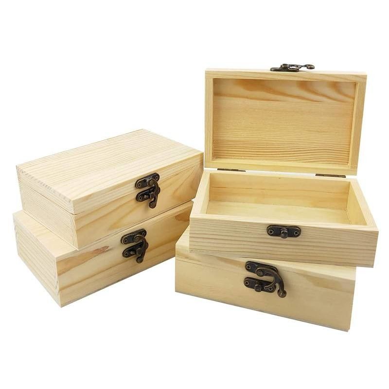 शिल्प थोक के लिए सस्ते अधूरे लकड़ी के बक्से काज ढक्कन ठोस पाइन लकड़ी उपहार बक्से