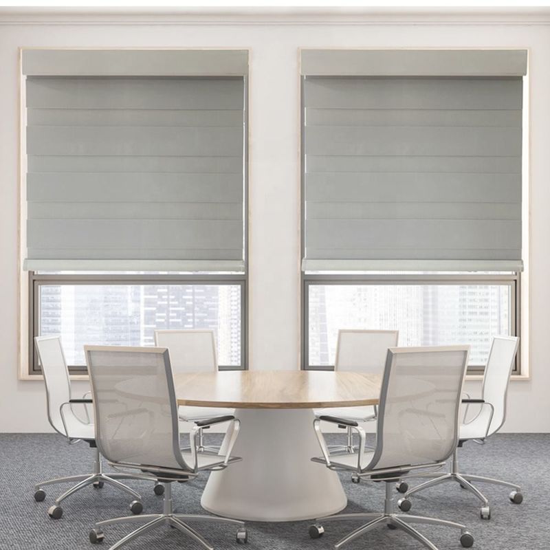 विंडो ज़ेबरा प्रकार के पर्दे उच्च गुणवत्ता वाले स्मार्ट मोटर चालित स्वचालित ज़ेबरा ब्लाइंड्स लेयर फैब्रिक शेड्स ज़ेबरा कॉर्डलेस रोलर ब्लाइंड्स