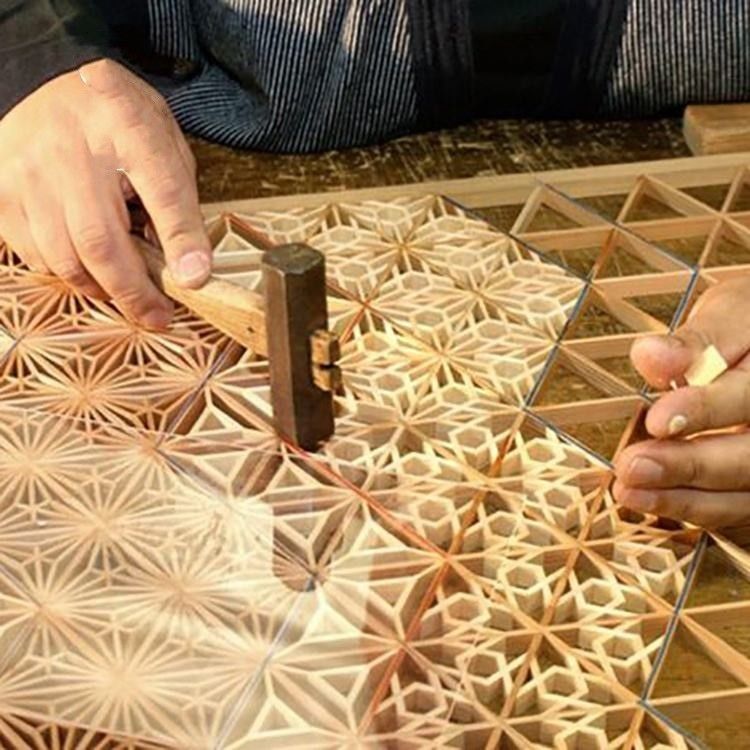 समूह शिल्प कौशल एक पारंपरिक लकड़ी की तकनीक है जिसमें कीलों के उपयोग के बिना लकड़ी को ज्यामितीय पैटर्न में इकट्ठा करना शामिल है।यह एक सूक्ष्म तकनीक है जिसमें पतली लकड़ी में ग्रूविंग, ड्रिलिंग और ड्रिलिंग छेद शामिल है, और फिर उन्हें एक विमान, आरी या छेनी के साथ एक-एक करके जोड़ना शामिल है।ज्यामितीय पैटर्न को छोटे लकड़ी के टुकड़ों, जिन्हें "पत्तियाँ" कहा जाता है, को विभिन्न आकार के ग्रिडों में रखकर व्यक्त किया जाता है।